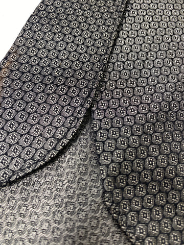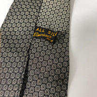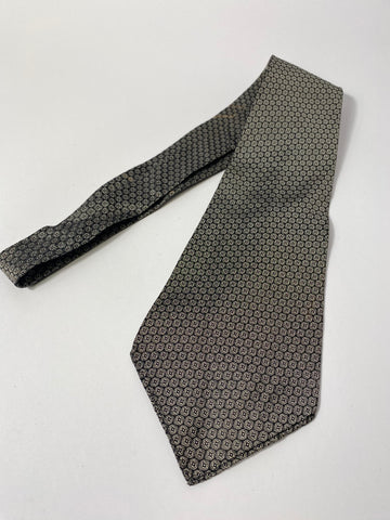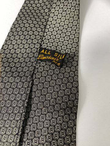 1930s Linosair silk tie black and white pattern for morning suit/dress attire. No lining and open backs with short blade at 115cm long 10cm wide. No damage.