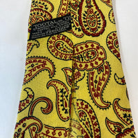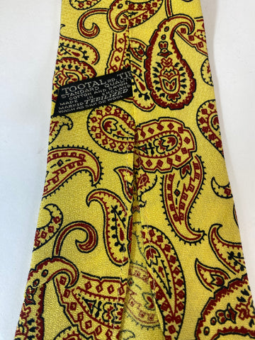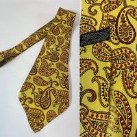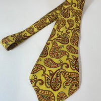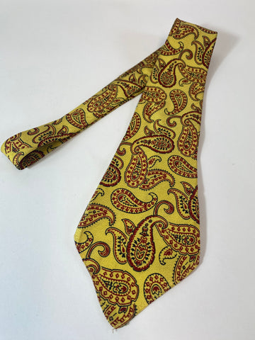 1940s Tootal tie standard quality in yellow with red and black paisley pattern. No lining and open backs with short blade at 125cm long and 10cm wide. No damage.